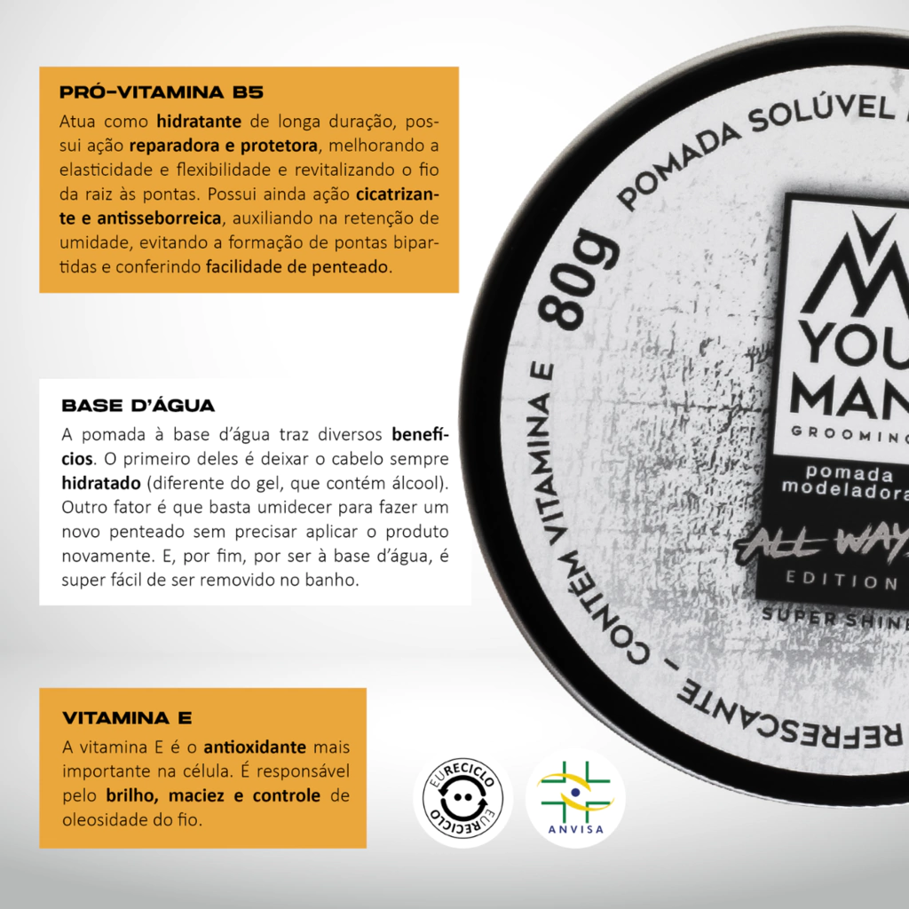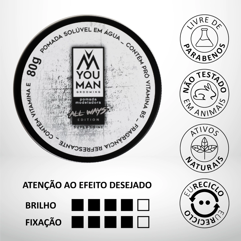 Abra a lata e deixe-se envolver pela fragrância marcante e amadeirada do Modelador Capilar All Ways da You Man Grooming. Prepare-se para um estilo que vai além das expectativas!