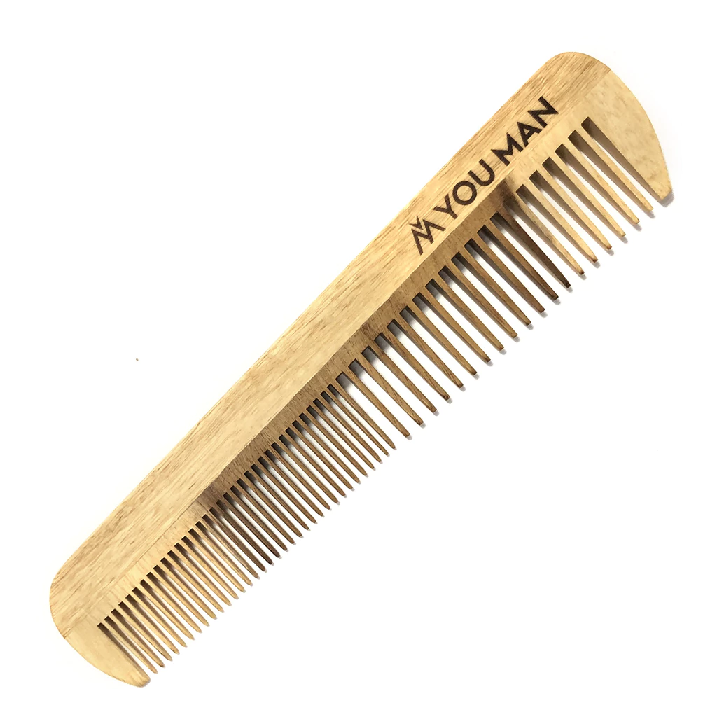 Com acabamento fino e muito resistente, este pente é indicado serve tanto para barba como para o cabelo, já que ele conta com dois níveis de espaçamento dos dentes. Por ser um pente de madeira, faz com que os fios não arrebentem e ainda ajuda no controle do frizz uma vez que a madeira age como neutralizador da estática dos fios. O pente de madeira ainda distribui a oleosidade natural da raiz às pontas.