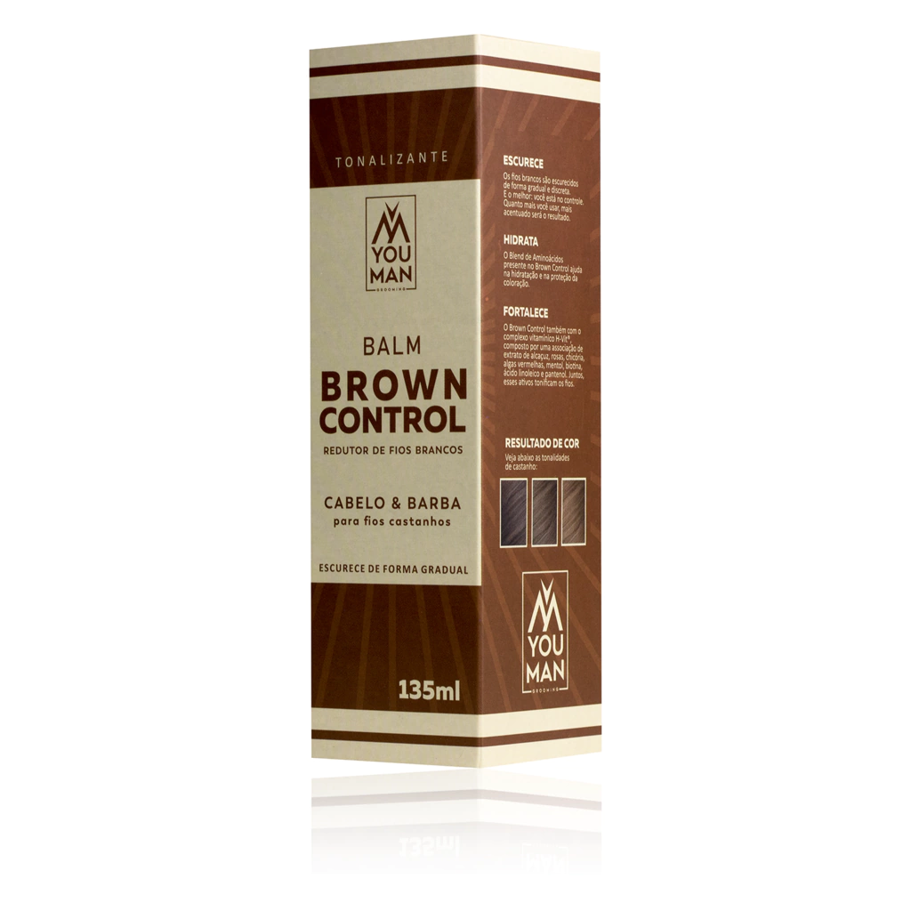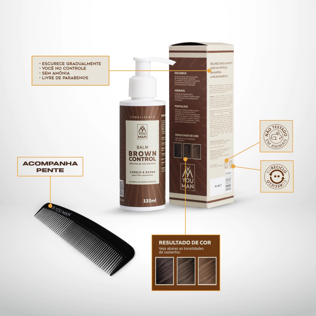 O Brown Control é um balm tonalizante, que escurece os fios brancos de forma gradual, proporcionando uma aparência natural e rejuvenescida a cada uso. E o melhor: você tem total controle sobre o nível de escurecimento que deseja. Quanto mais usar, mais escuros os fios ficam. Serve para cabelo e também para barba.