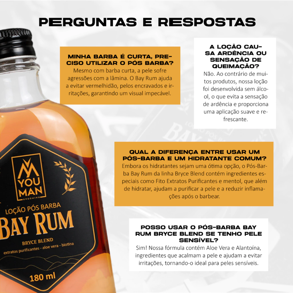 Uma receita centenária criada pelos piratas nos anos de 1800 aliada às novidades da indústria cosmética. Em síntese, essa é a combinação que chegamos para a criação do novo produto da You Man: um pós-barba estilo Bay Rum, que faz parte da linha fortificante Bryce Blend.
