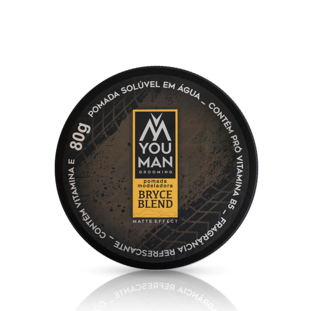 Esse Kit viagem da linha Bryce Blend oferece os produtos básicos para o cuidado com o cabelo: um shampoo fortificante, uma pomada modeladora efeito matte, um pente duplo de madeira e uma necessaire exclusiva.